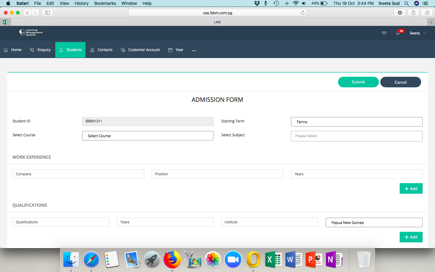 Document management: Students can upload their forms and certificates like Admission Form, High School Transcript, Enrolment Form and Withdrawal forms